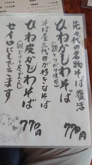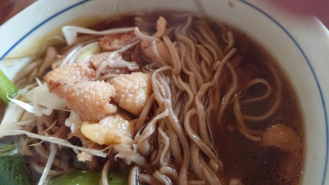 ひね皮かしわそばです。