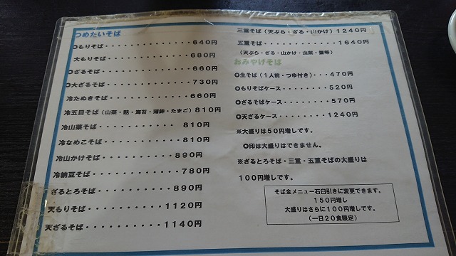 大もりと大ざるです。大盛は50円増なのでお得。