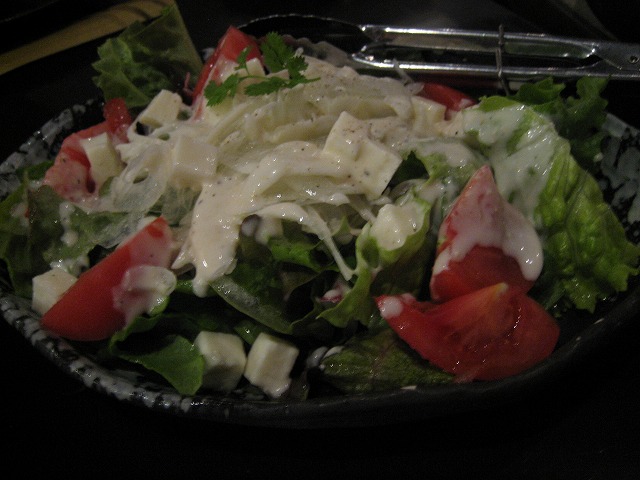 お通しのキャベツとサラダです。
