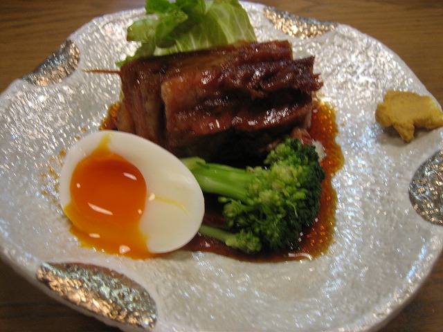 ちょっとピンぼけですが、大きい豚ブロックが甘辛く柔らかく、実