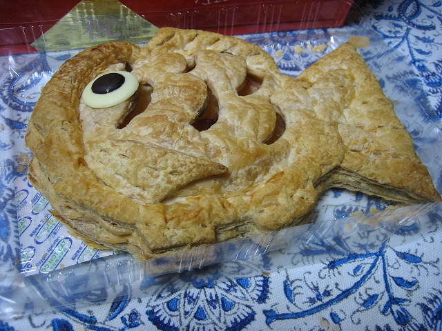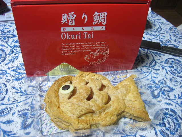 鯛のかたちをしたパイ生地に、頭から尻尾まで完熟リンゴの蜜煮が