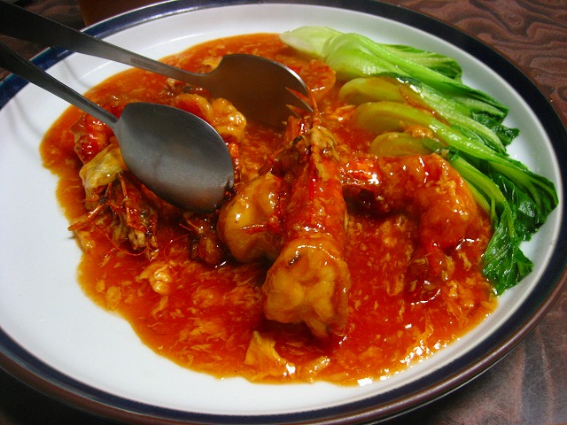 和食だけでなく、大きなエビのエビチリも出てきました。