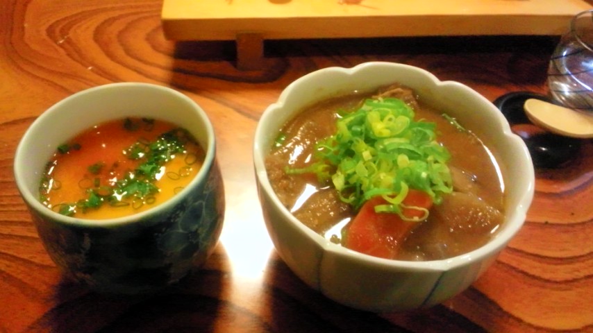 真ダチ入り茶碗蒸しとモツ煮込みです。