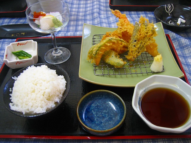 さくっと揚がった天ぷらに上品な器に新鮮なお刺身です。