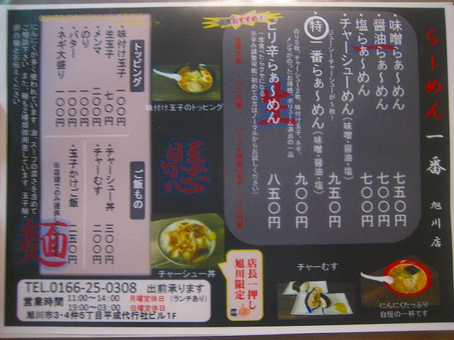 3.4仲5丁目にある、らーめん一番旭川店です。