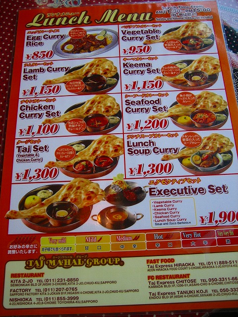 札幌などにあり、インドカレーの店としてお馴染みです。