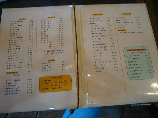 メニューはラーメンをはじめとした中華料理で、ランチメニューもありました。