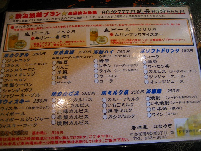 すすきので、格安に居酒屋で飲み放題するのにおすすめします。