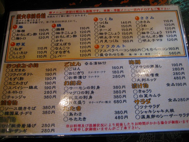 注意事項は、低料金な料理なため、¥1000以上飲む(飲まなく