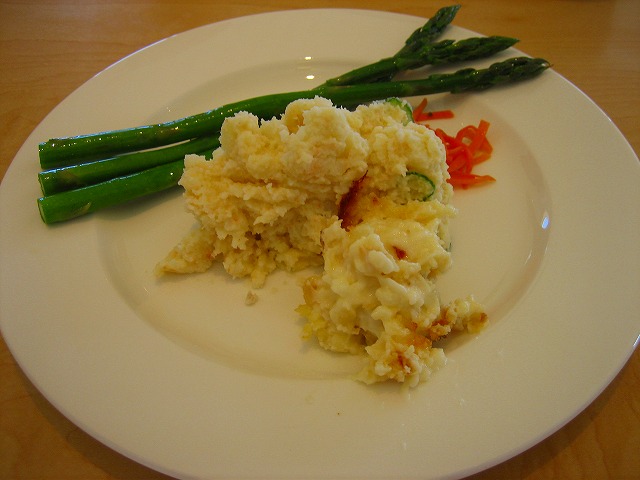 今が旬のアスパラやポテトサラダ、グラタンをお代わりします。