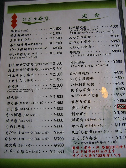 お寿司から定食・丼物、セットメニューも豊富です。