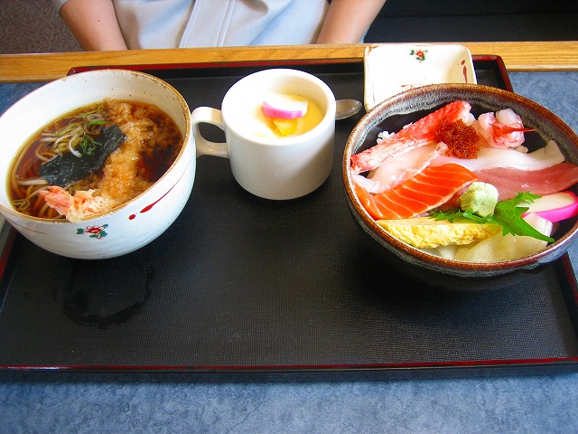 ミニちらし+ミニそばですが、どちらも十分なボリュームで、茶碗蒸しまでついています。
