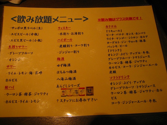 飲み放題メニューは