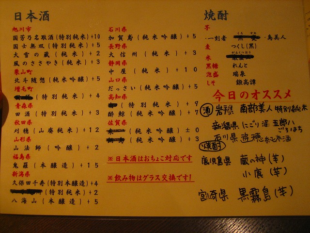 日本酒も、南部美人などもあり種類が豊富です。