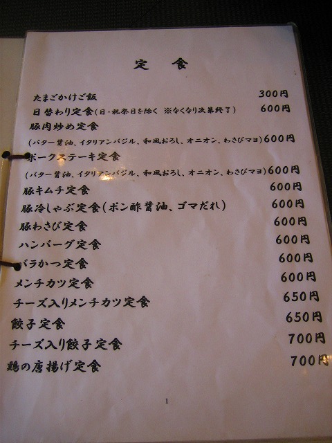 最高値がお肉定食でワンコインです。