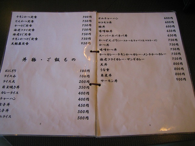 定食類や丼物の種類が多く、安いですね!。