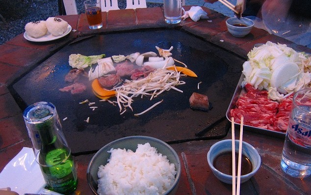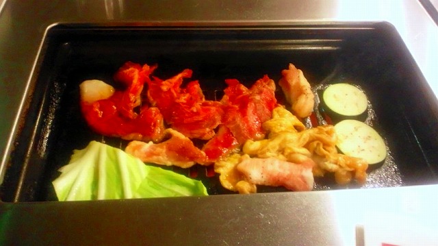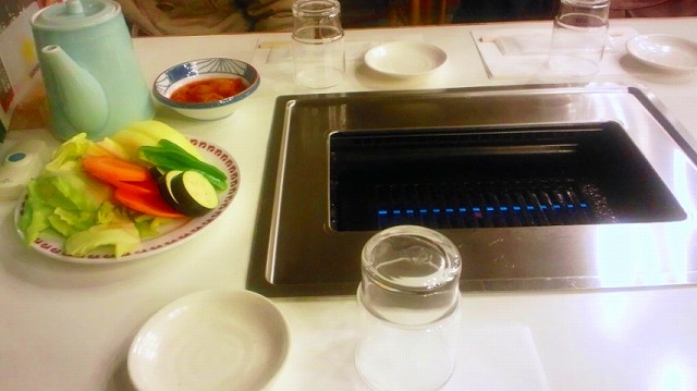 大きな鉄板のある席でいただきます。
