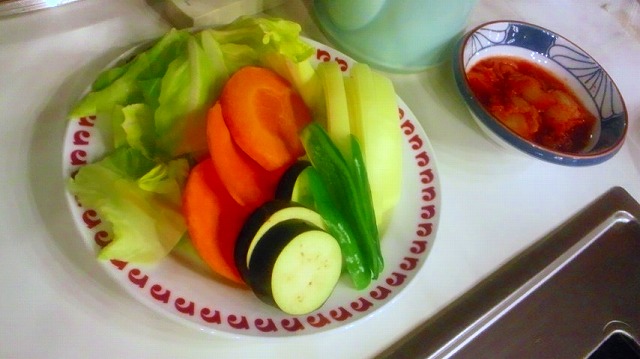 野菜とキムチがすぐにきました。