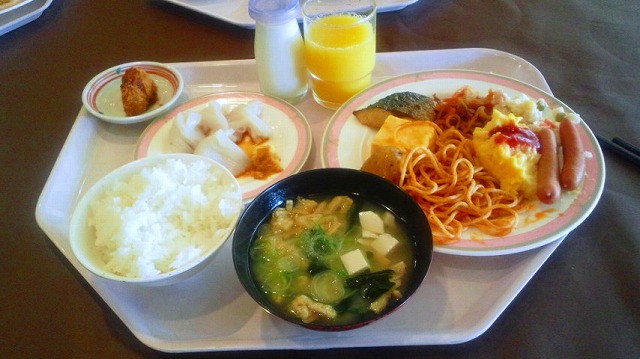 朝はホテルレストランでのバイキングです。