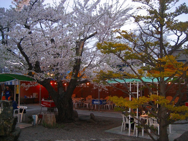 食べ終わった頃にはすっかり暗くなり、ライトアップの夜桜を鑑賞して