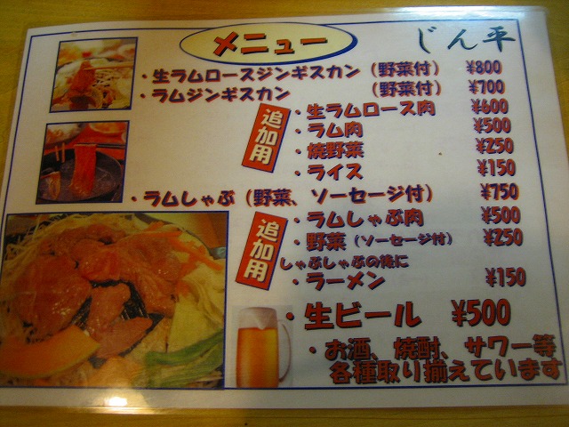店 名:ジンギスカンじん平