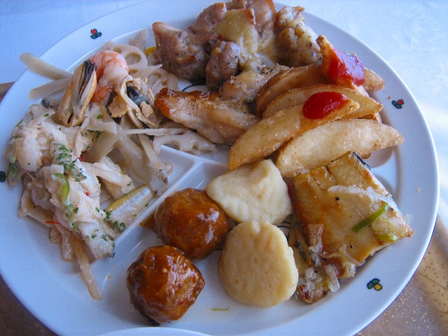 プールで遊び、お腹も空いていたので、どんどん食べます。