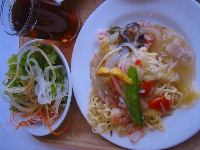 あんかけ焼きそばとサラダ