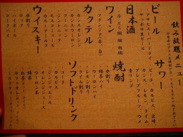 飲み放題メニューですが、¥3000の宴会でもビールが飲めます。