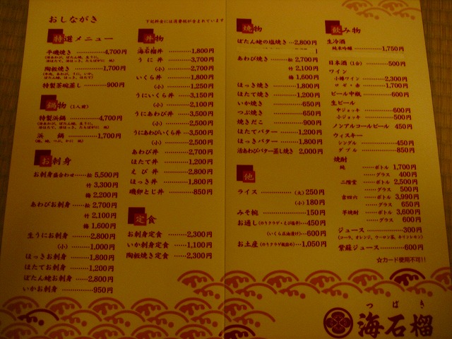 店 名:海の幸の店 海石榴(つばき)