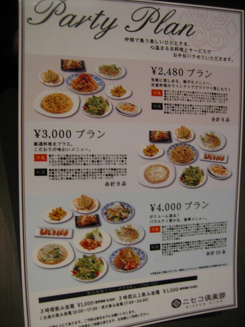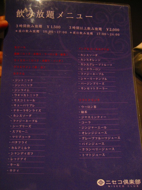 今回は¥2480+3時間飲み放題¥1000のプランです。
