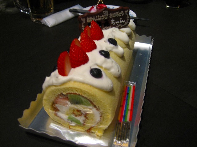 サプライズで、ミルク工房のロールケーキを用意して、ろうそくに火を
