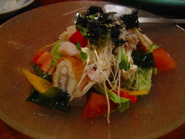 おばんですサラダと温サラダです。創作された海鮮系も入っています。