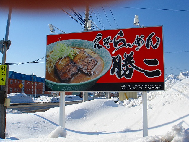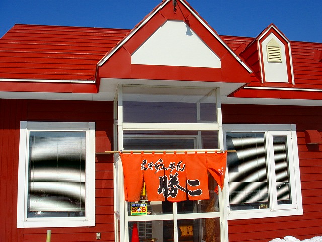 蘭越市街入口の国道5号沿いにある「えぞラーメン勝二」です。