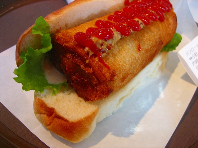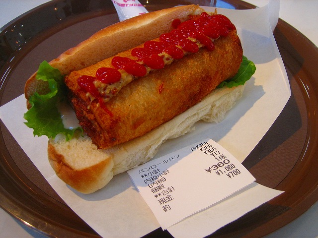 かま栄のパンロールを亀十のコッペパンが挟みます。