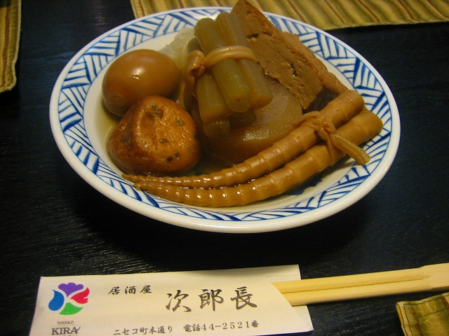 おでんです。地元の食材を中心に良く浸みていて美味しいです。