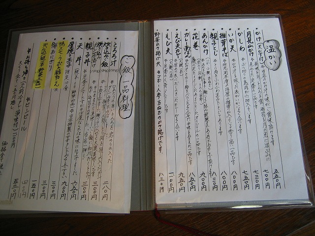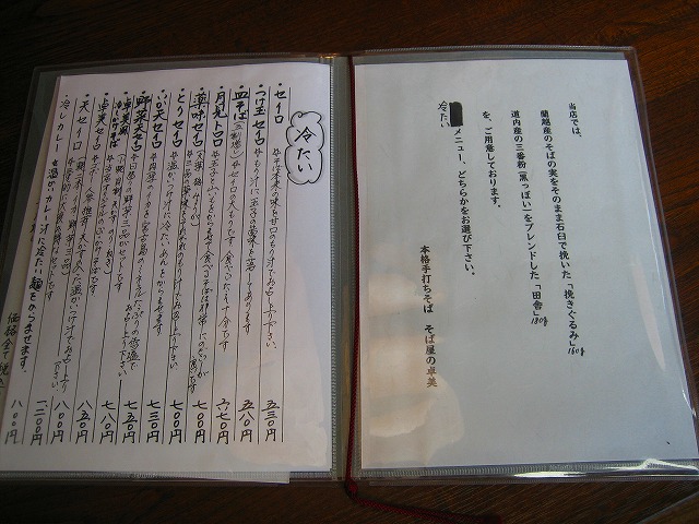 蘭越産そばの「挽きぐるみ」と道内産そばの「田舎」の2種類から選べます。