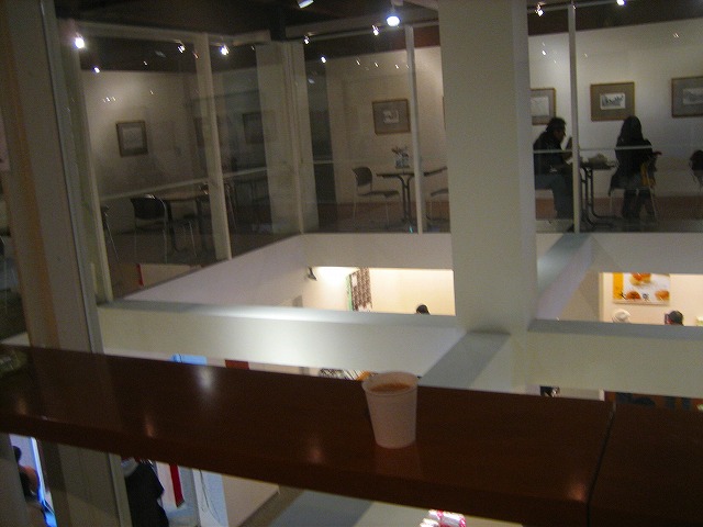 お洒落な吹き抜けの廻りに喫茶スペースがあります。
