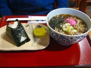 かけそばといくらのおにぎりです。