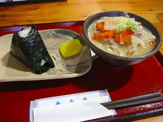 豚汁とこぎつねバターおにぎりです。