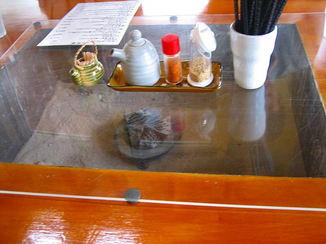店内は古民家風な作りで、囲炉裏風なテーブルです。