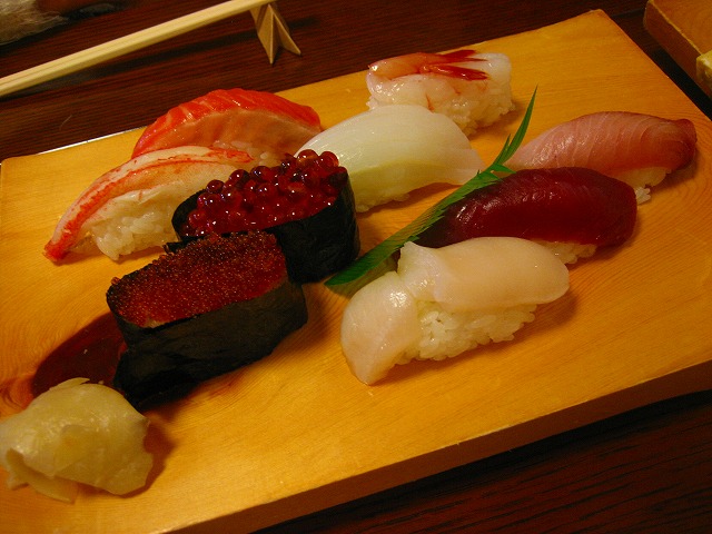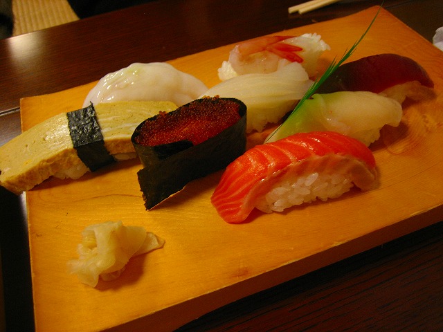 タコ、エビ、サーモンなどの8貫です。