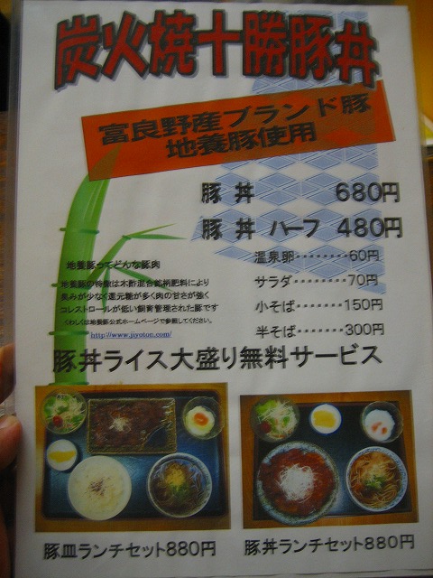 豚丼のメニューです。