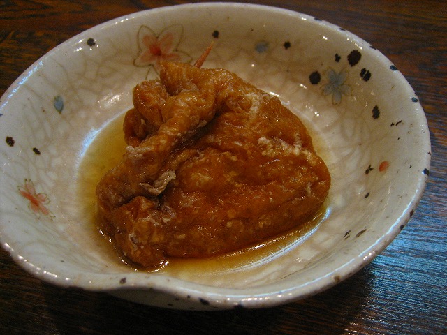 まずはお通し。味の浸みた巾着です。