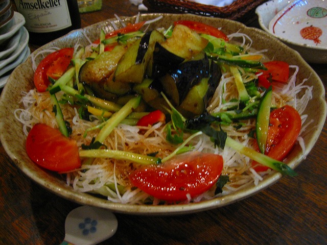 軟骨のサラダと揚げ茄子のサラダです。