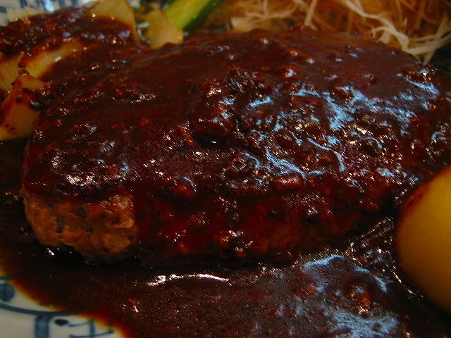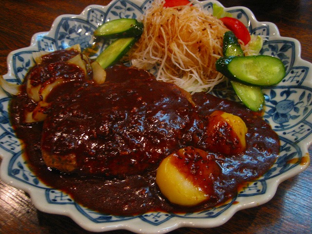 大きなお皿にデミグラソースがかかったハンバーグでてきました。