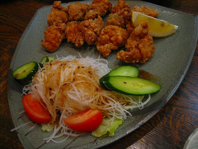 ザンギです。こちらも大盛な大根サラダです。