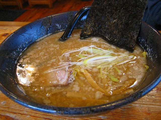 中太な麺で、スープの表面に背脂が浮いていますが、それほどくどさのないスープでした。