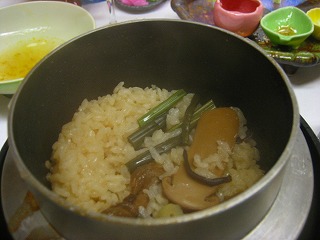 松茸?の釜飯と1人鍋は、熱々です。