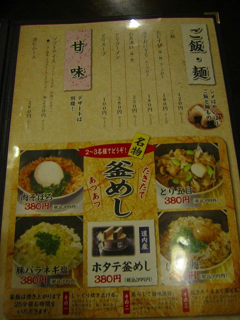 今回は、宴会コースを利用しないで、席予約として色々注文しました。