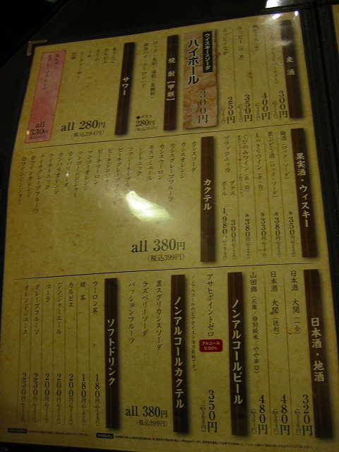 やはり、生ビール(スーパードライ)が¥315と嬉しいお店です。